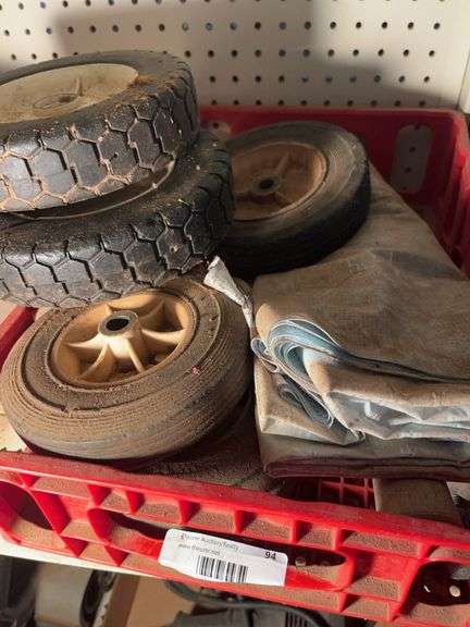 LOT 94 - Wheelbarrow Wheels, Lawn Mower Wheels, and Hardware