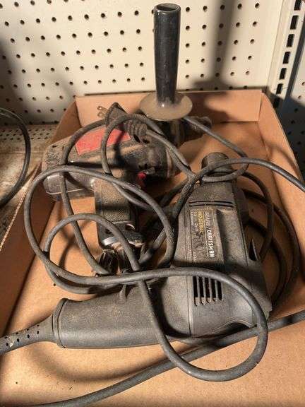 Two electric drills, both Sears Craftsman models. One is a 3/8 inch electric drill and the other is an industrial 3/8 inch drill.