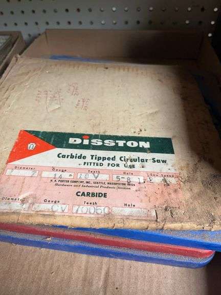 Includes multiple Disston carbide tipped circular saw blades. Fitted for use. See photos for measurements and details.
