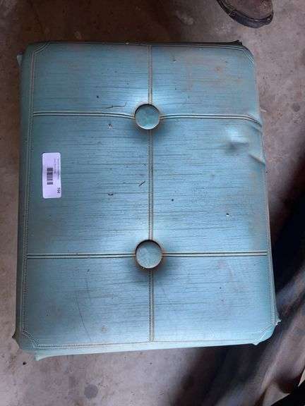 Includes a square blue upholstered stool and a miscellaneous bag.