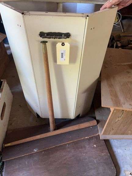 LOT 215 - Vintage Mid-Century Modern Metal Corner Cabinet and Table (needs repaired)