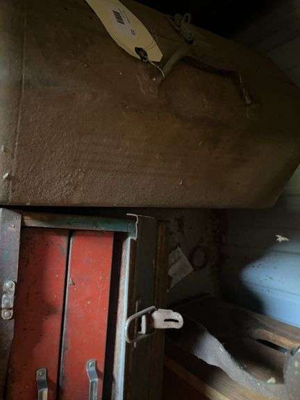 Includes metal tool box, steel trunk, and an assortment of tools.