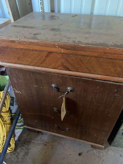 Cabinet with three drawers and side access door W/Kenmore sewing machine.