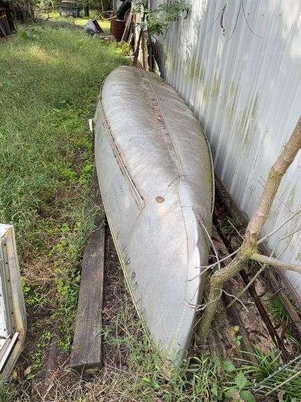 Aluminum Jon boat, a stable and easy-to-maneuver boat perfect for fishing and enjoying time on the water. Appears to be 15 ft measuring the back edge to the tip.